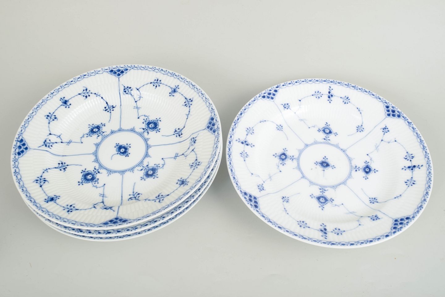 Royal Copenhagen Musselmalet Halvblonde sæt af fire middagstallerkener.