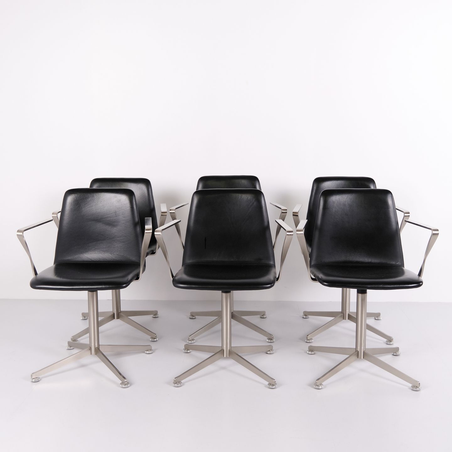 Sæt af 6 Paustian Spinal 44 konferencestole i sort læder. Dansk design med moderne og funktionelt formsprog.