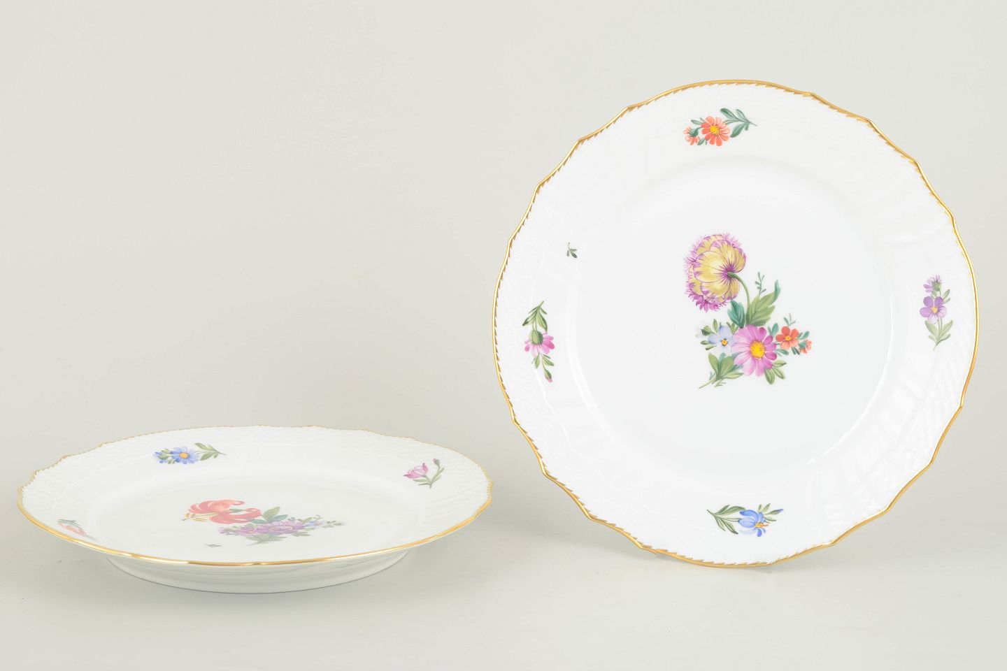 Håndmalet porcelæn dekoreret med saksisk blomst, model 493/1630. Første sortering.