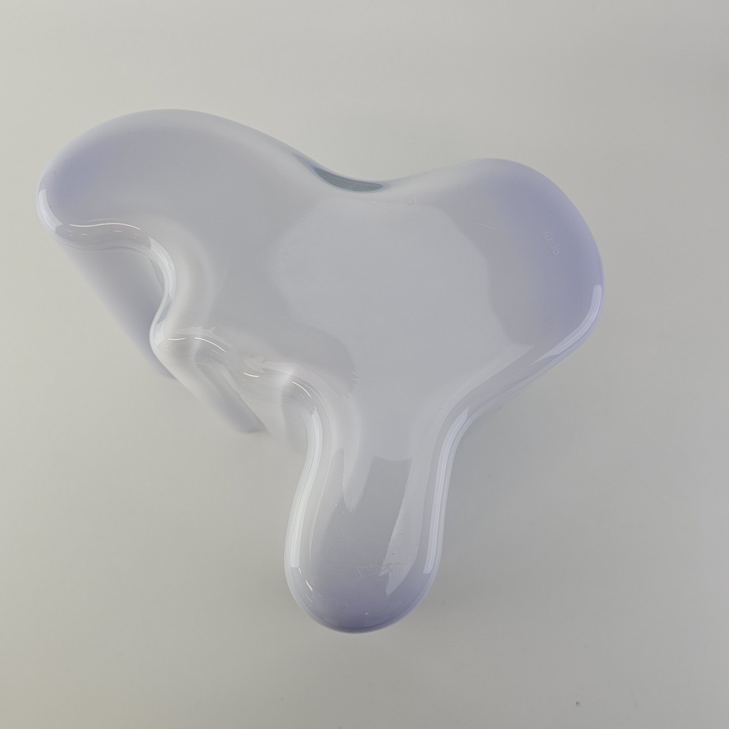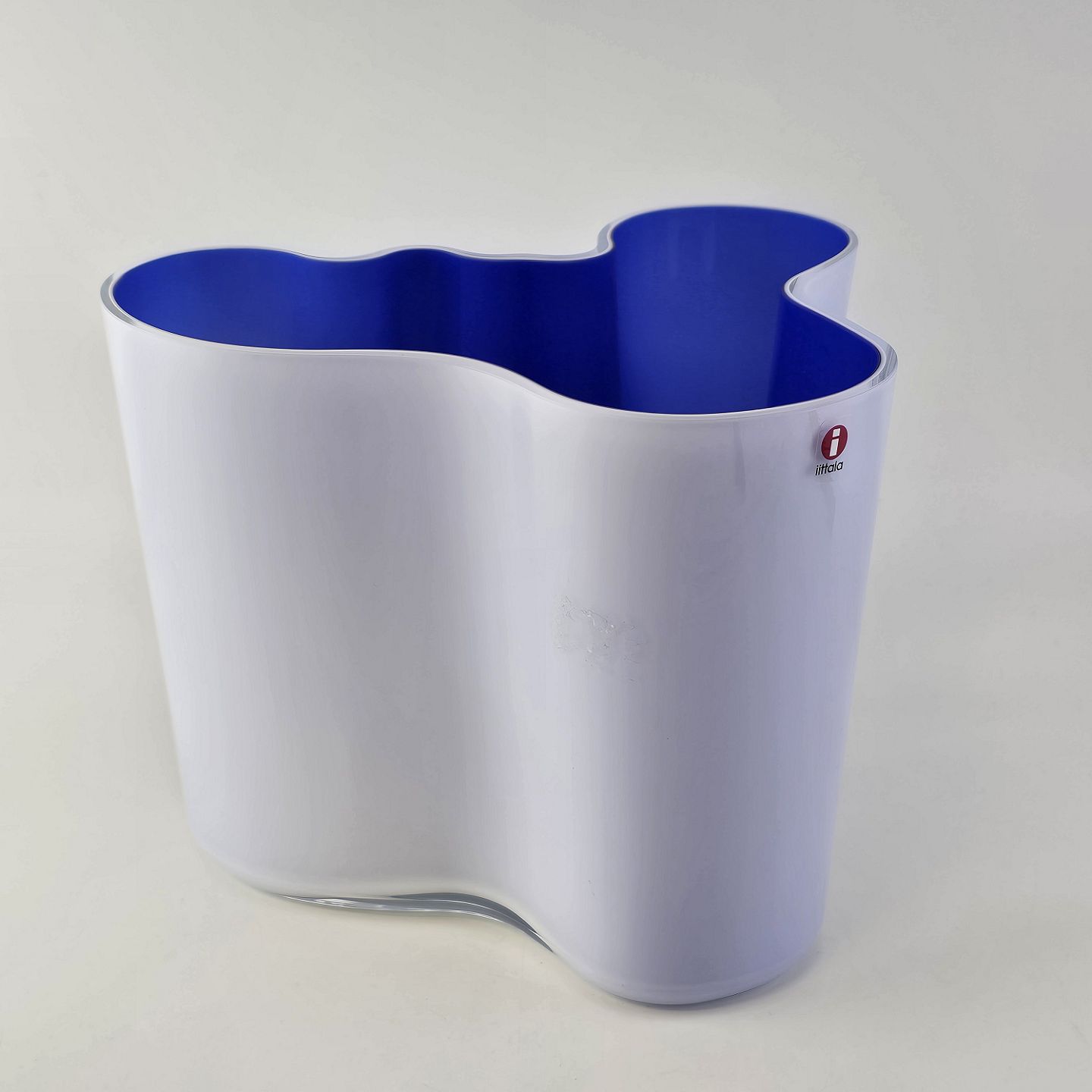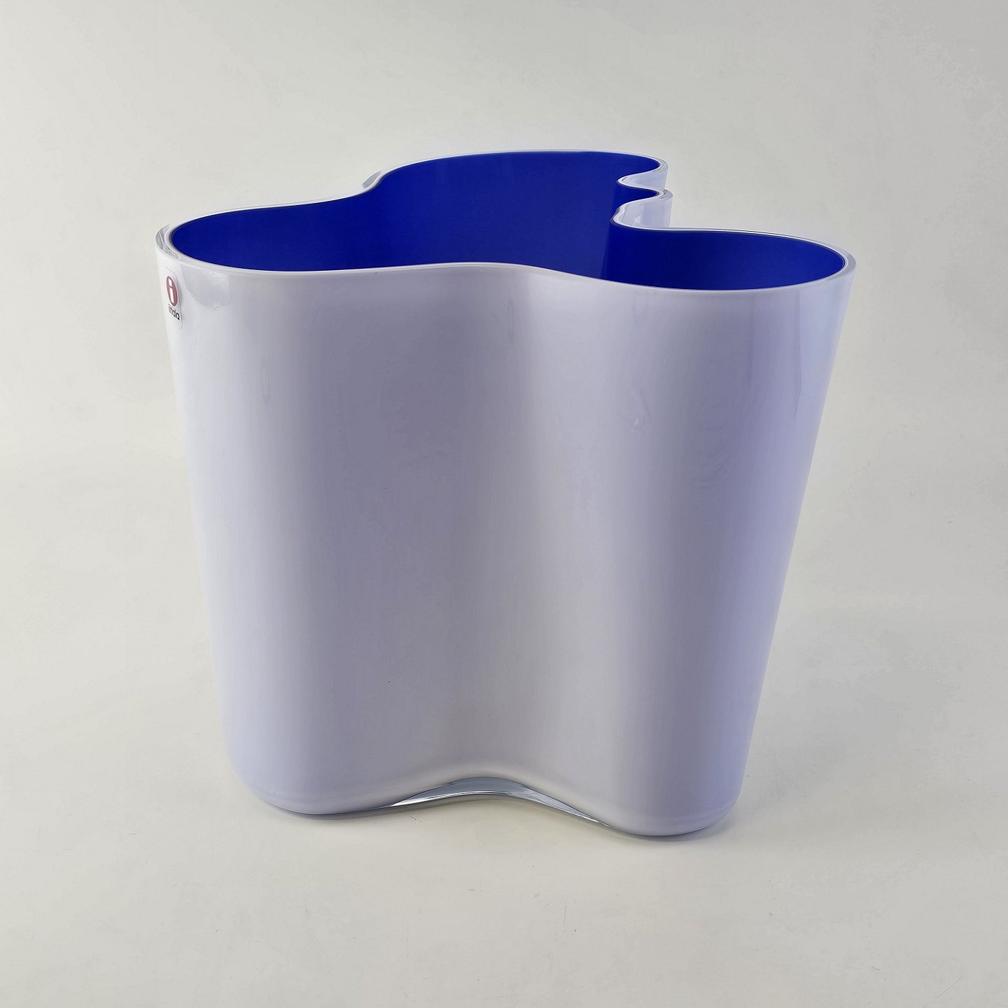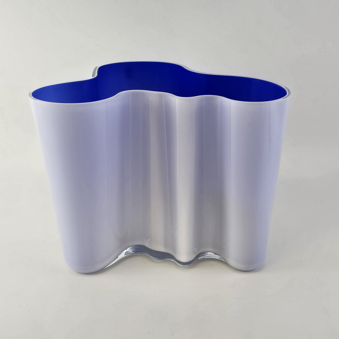 Savoy vase af glas, som er hvid på ydersiden og blå på indersiden