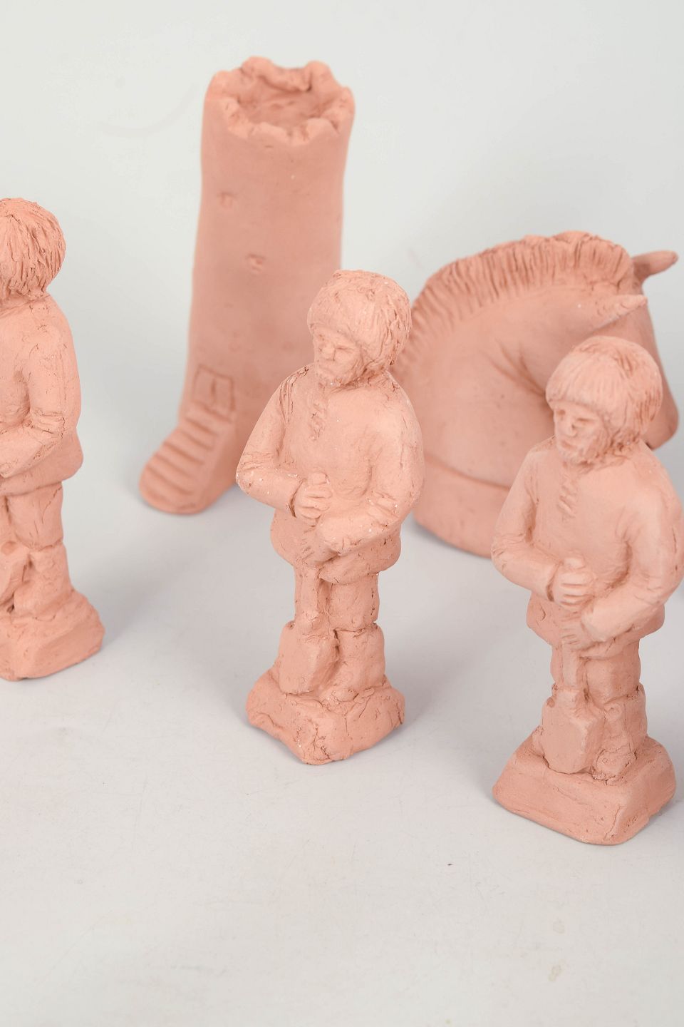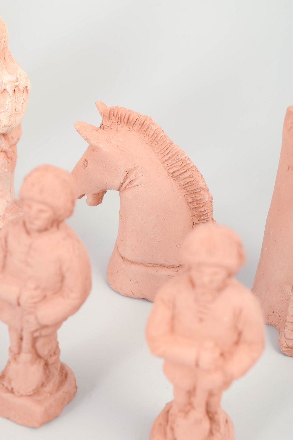 Unikt keramisk skaksæt bestående af toogtredive håndmodellerede figurer udført i uglaseret ler. Figurerne er udformet som stiliserede menneskefigurer og skulpturelle former, hver med individuelle karaktertræk og detaljer. Flere af figurerne er signerede. Sættet fremstår som et kunstnerisk fortolket skakspil med tydelig skulpturel karakter. Fremstillet i 1959.