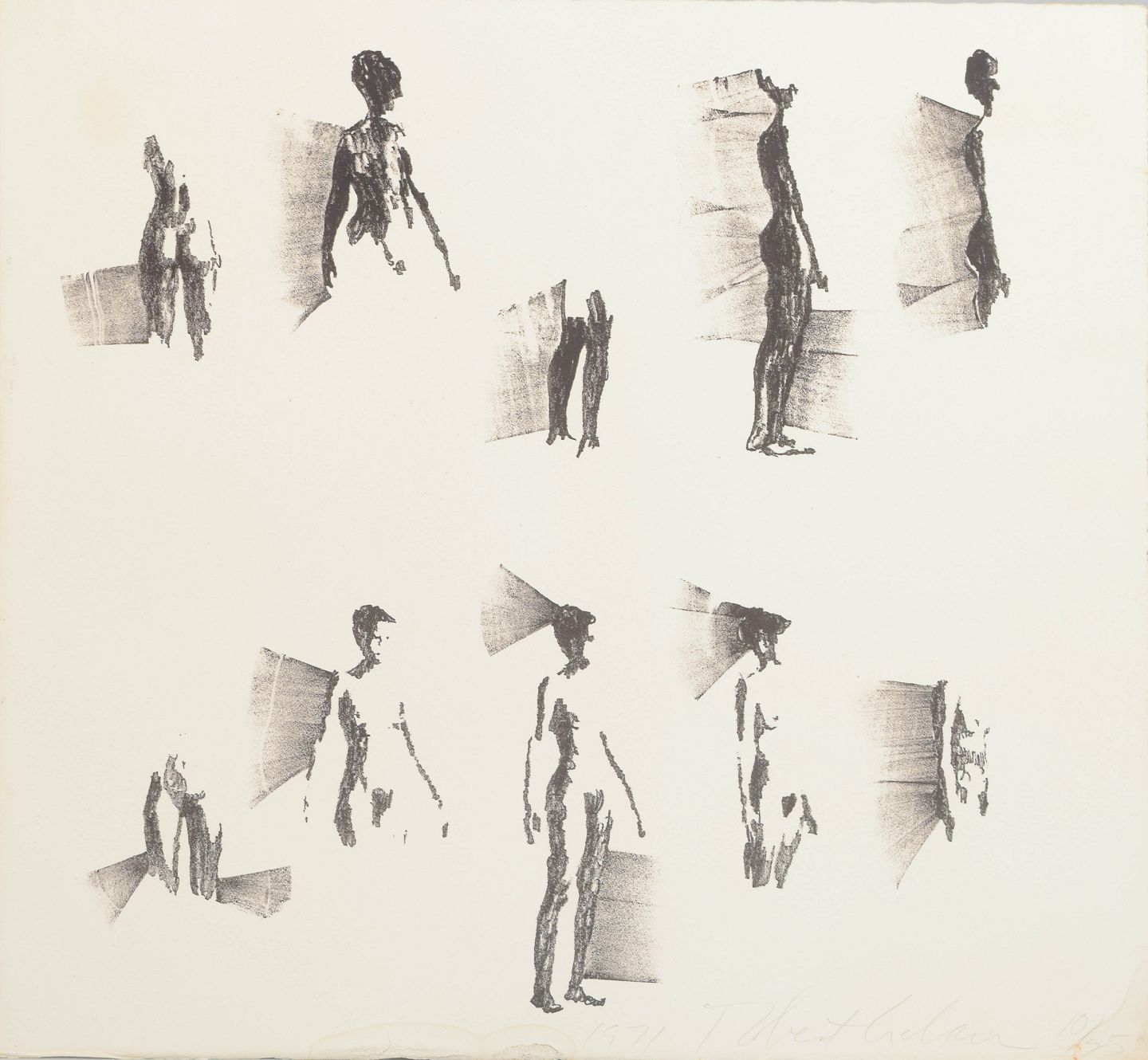 Graphic composition depicting studies of standing nude figures executed as a lithograph, signed in pencil, dated 1971 and numbered 10/55.
