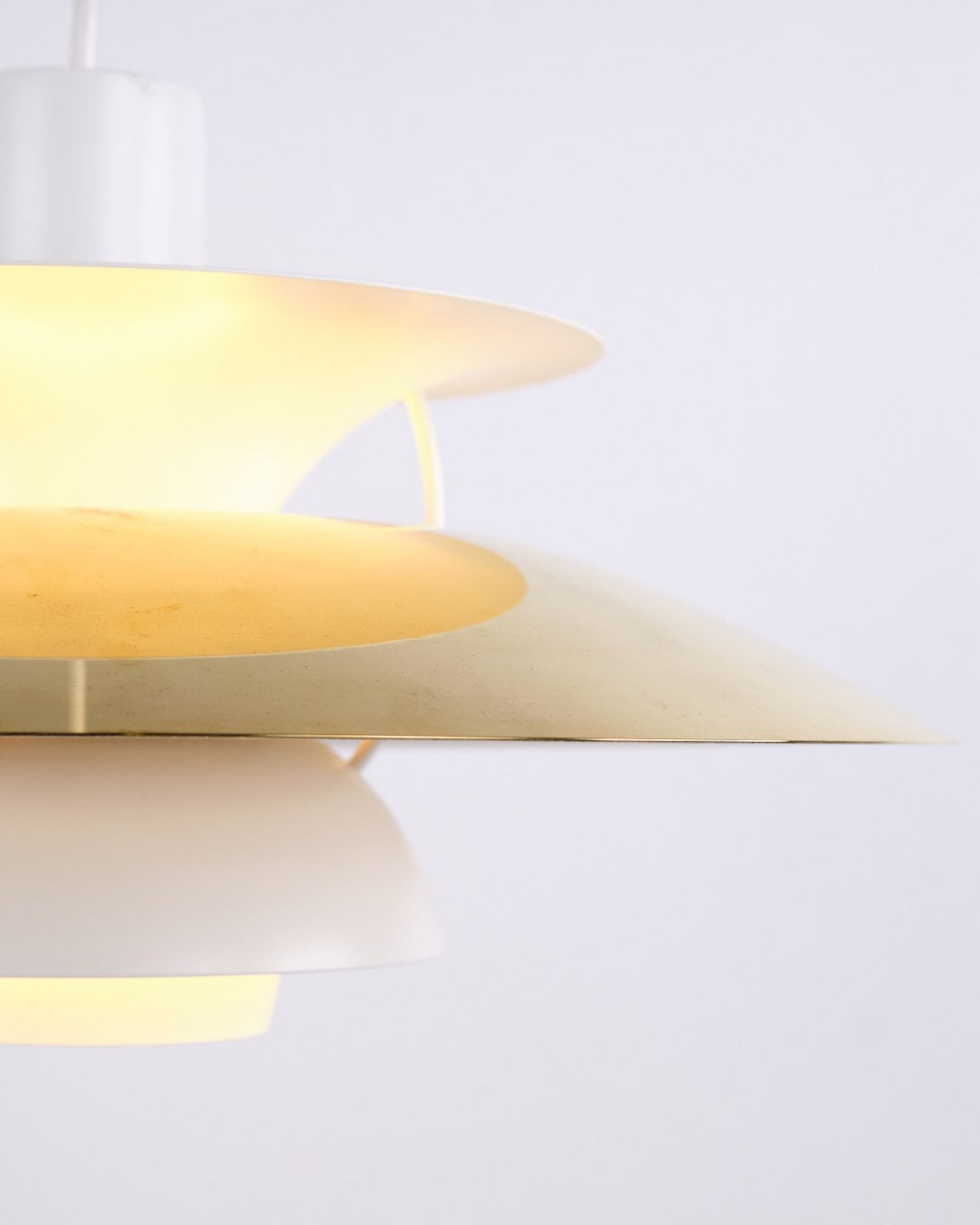 PH 5 pendel i messing fra Louis Poulsen designet af Poul Henningsen. Klassisk dansk lampe med blændfrit og funktionelt lys.