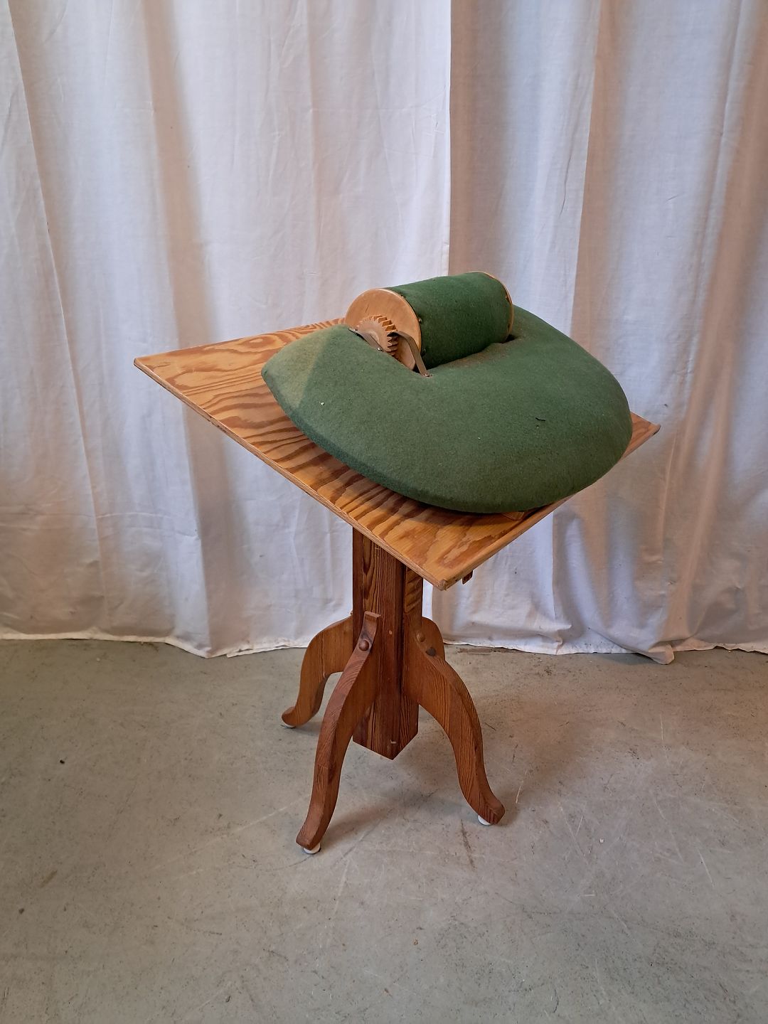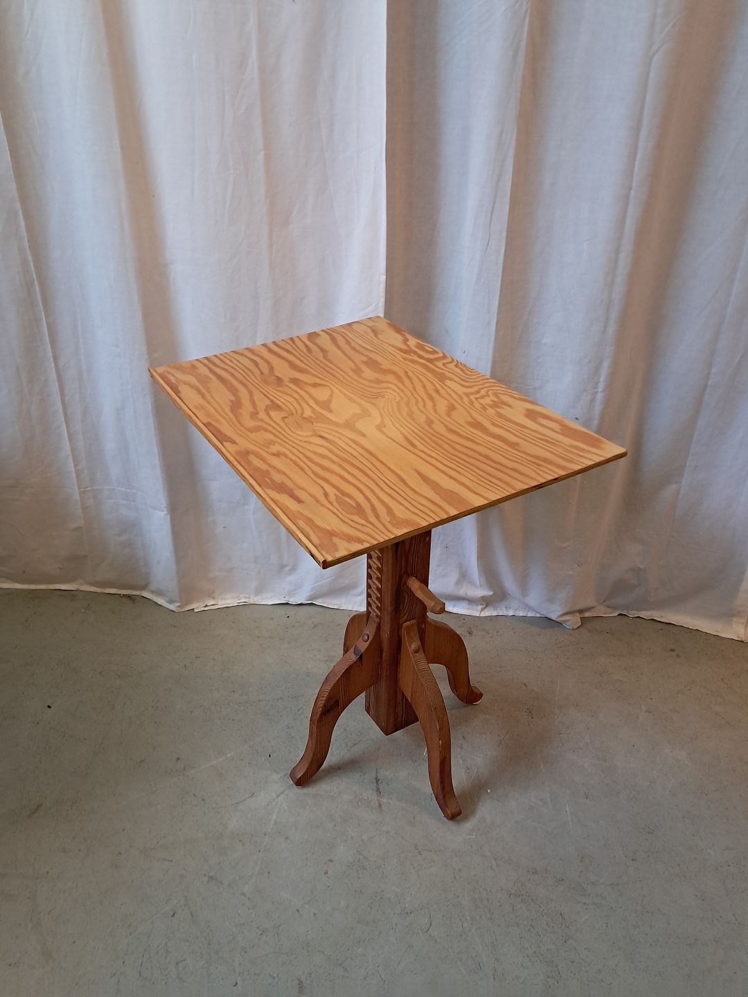 Bord i massivt fyrretræ med krydsfiners plade, fra 1980erne.
