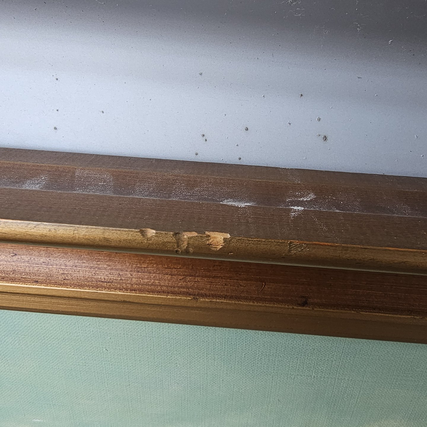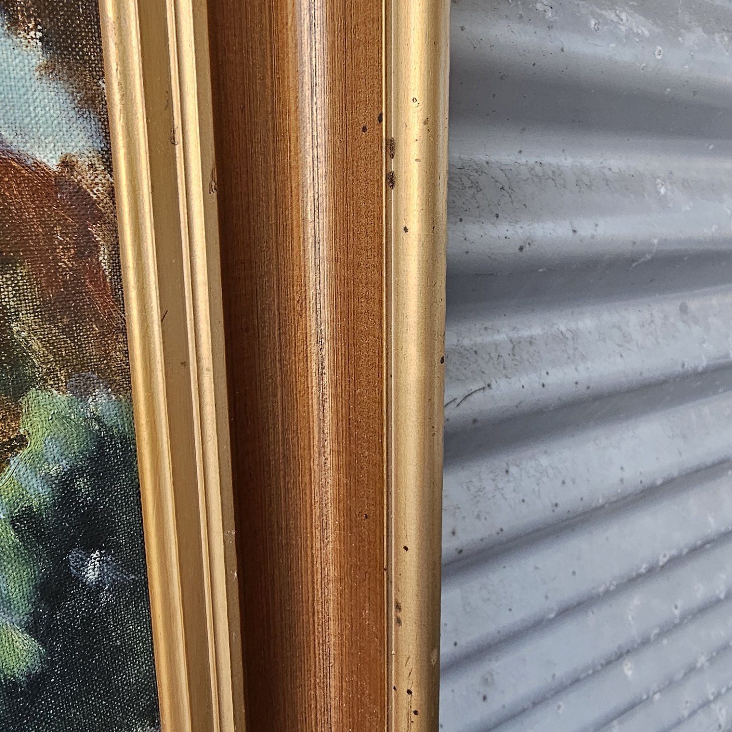 Oliemaleri på lærred med titlen Blokhus. Monteret i guldramme med motiv af landevejen til Blokhus