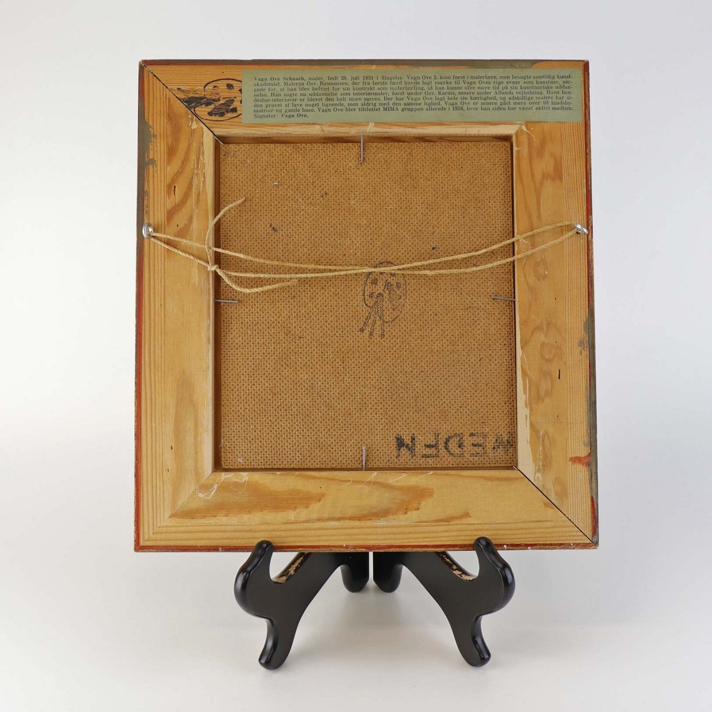 Maleri på plade i guldmalet træramme med med ældre interiør motiv fra dansk bondehus.