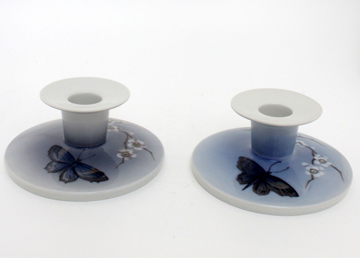 Lysestager med blomstergren og sommerfugl, Royal Copenhagen