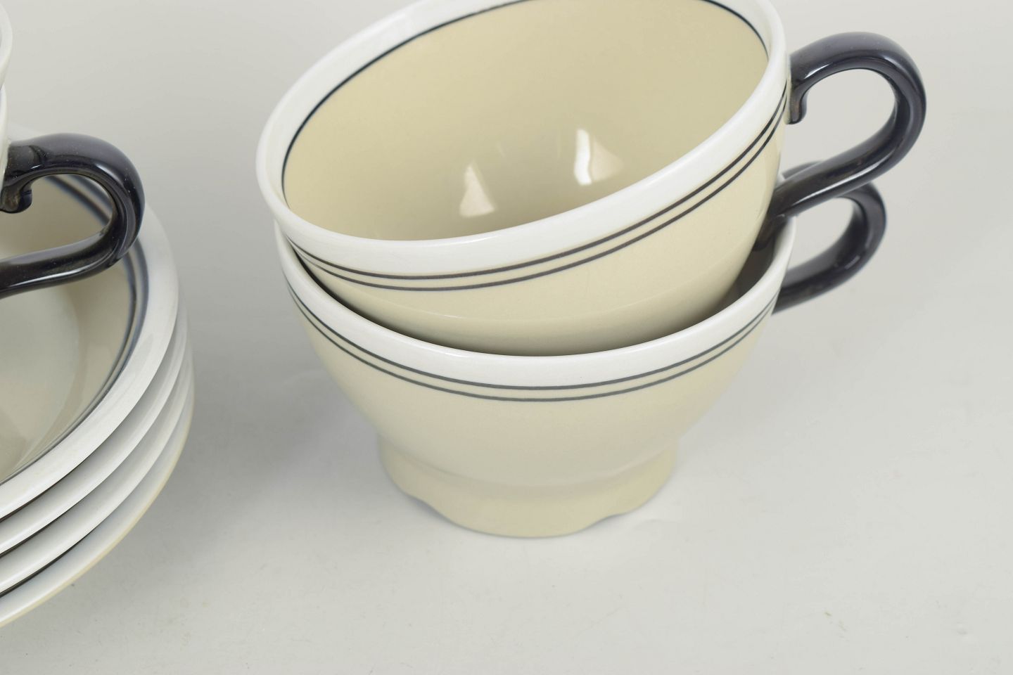 Elegant faience teacups with matching saucers, executed in a clean and refined form with a light glaze. The “Nocturne” series reflects the functional and timeless design tradition of Rörstrand in the 1960s.