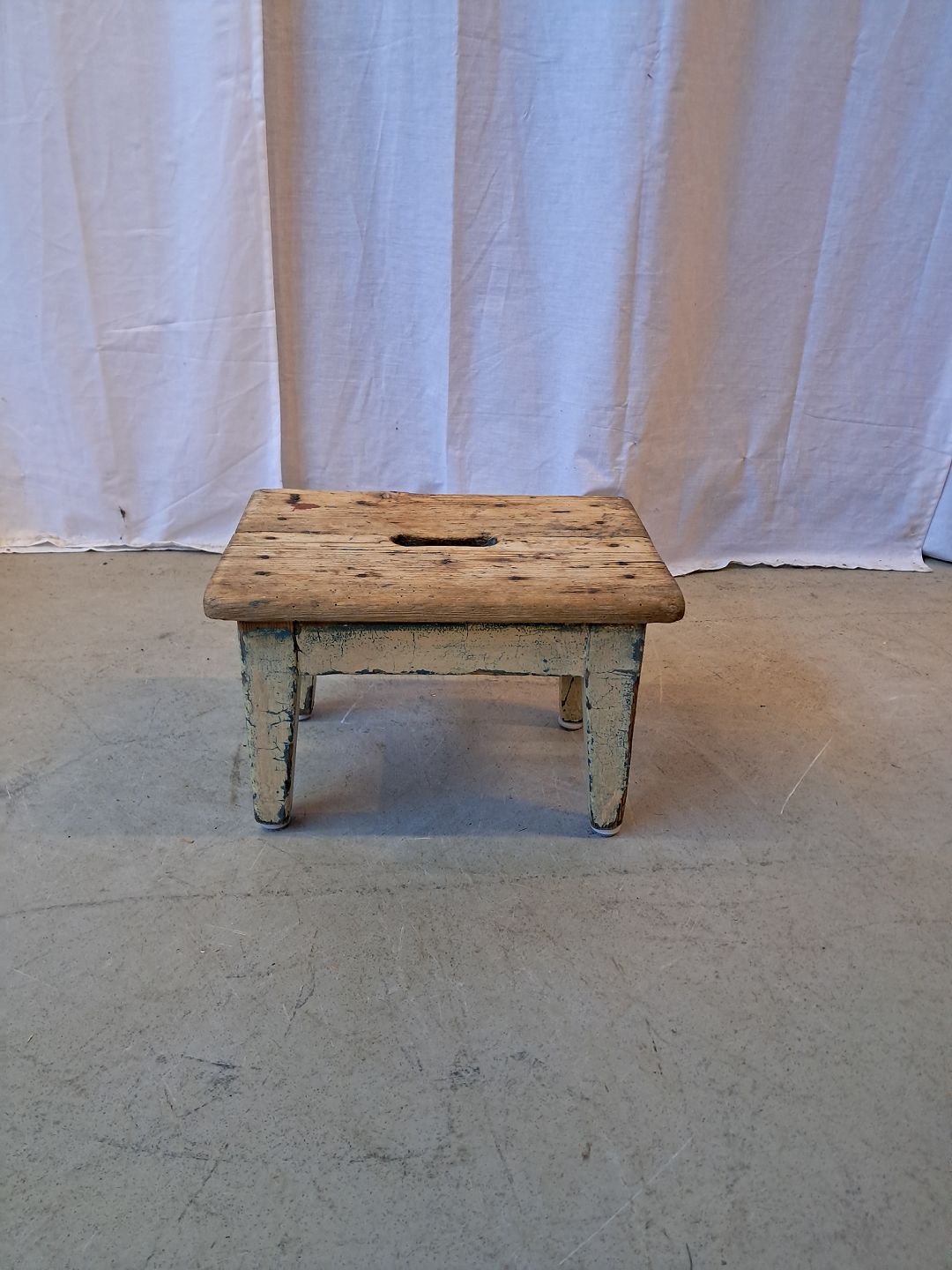 Lille taburet i massivt fyrretræ, fra 1910erne.