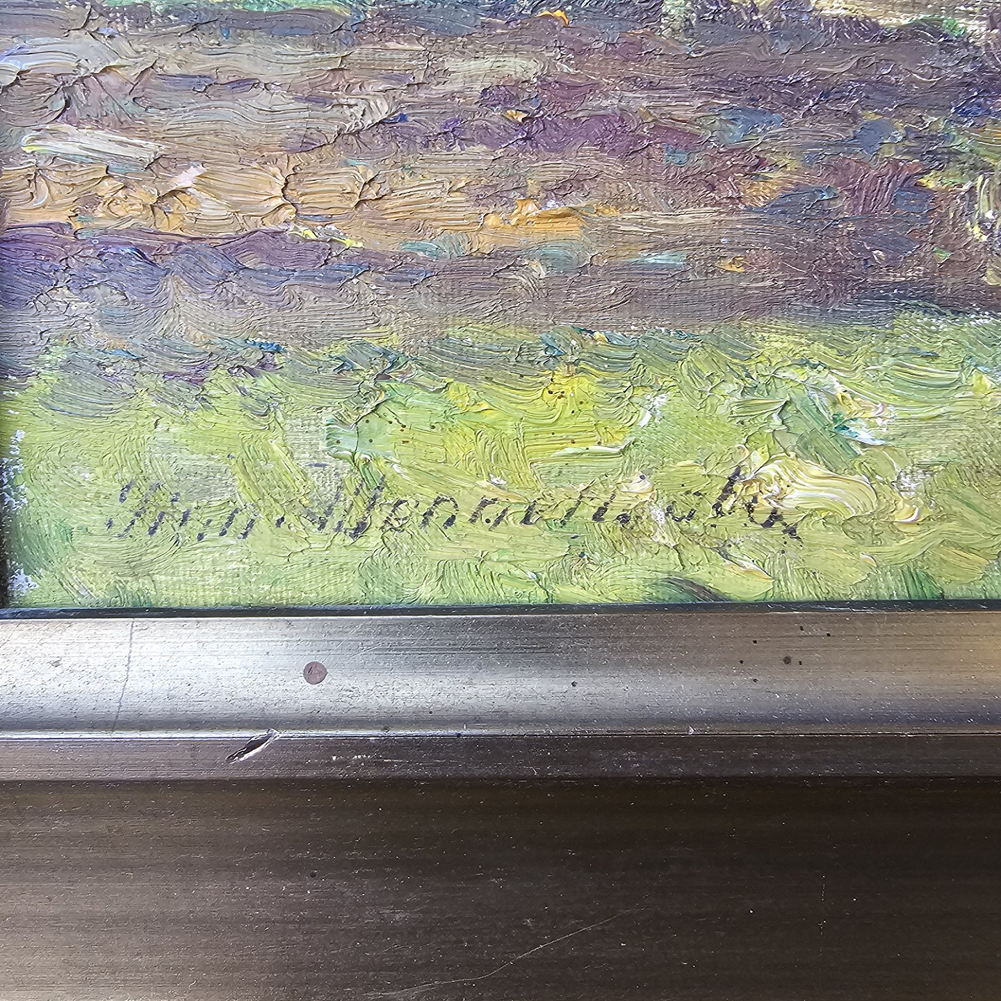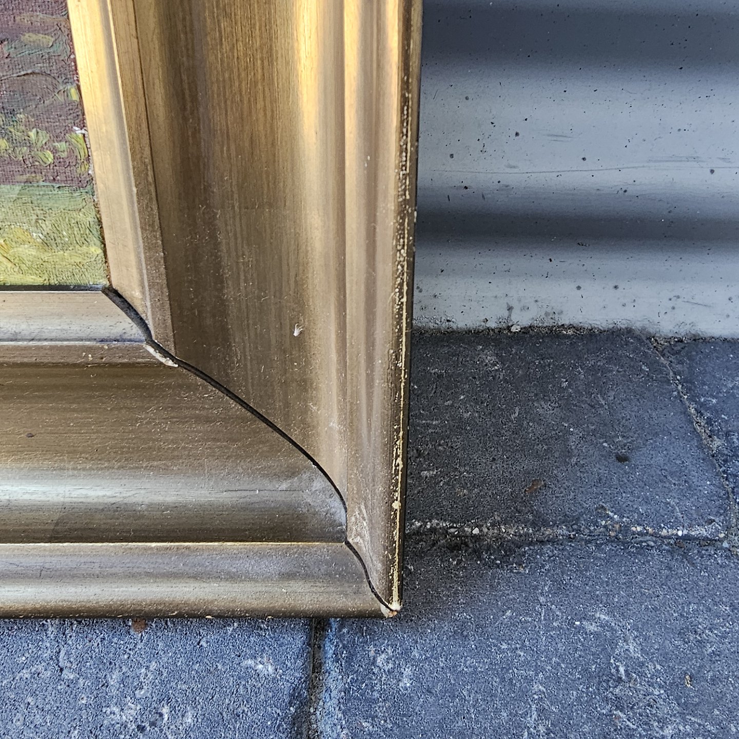 Fremstår med brugsspor på rammen og selve maleriet sidder løst i rammen
