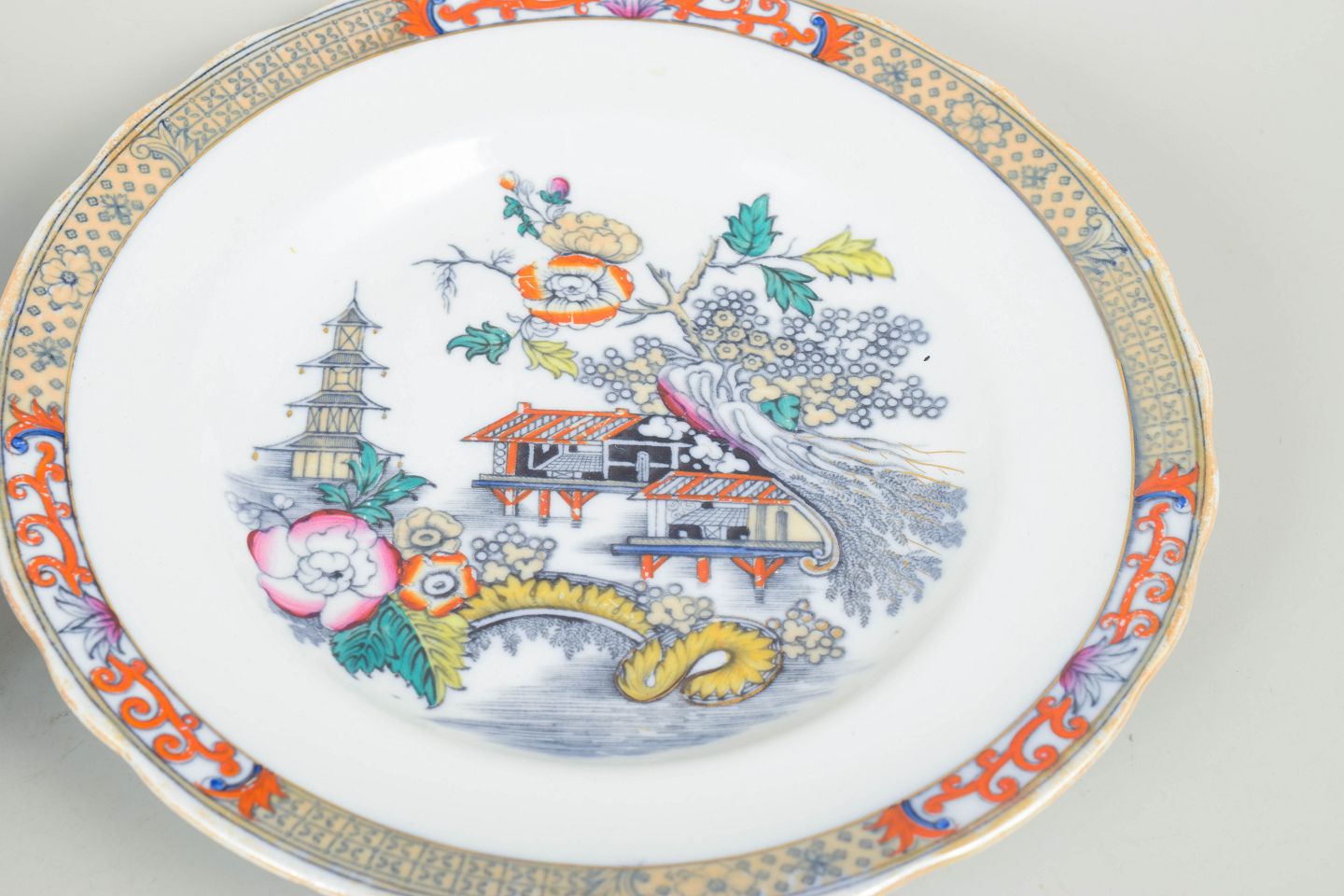 Dinner plates in faience with oriental-inspired decoration in polychrome colours and finely detailed painting in Japanese style, characteristic of Rörstrand’s japonisme production from the early 20th century.