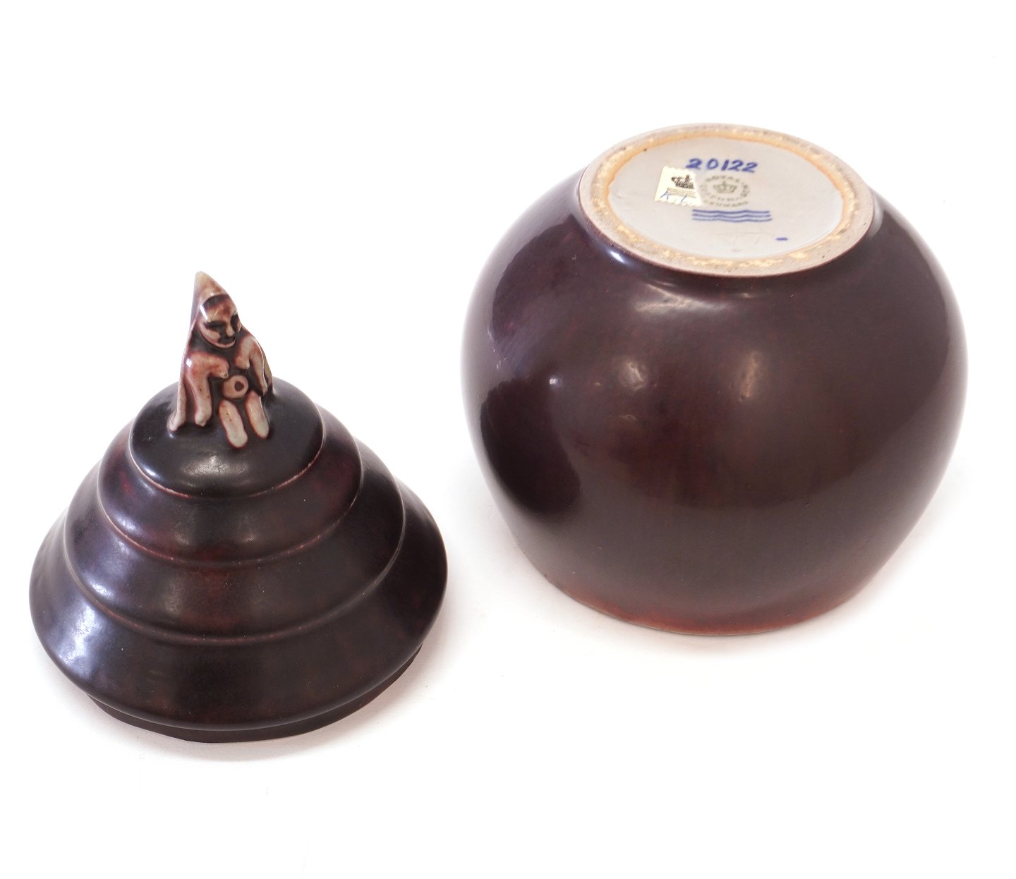 Bode Willumsen lågkrukke i stentøj med lågknop i form af kvindelig figur. Signeret Bode Willumsen Royal Copenhagen 20122. H: 17,5cm |