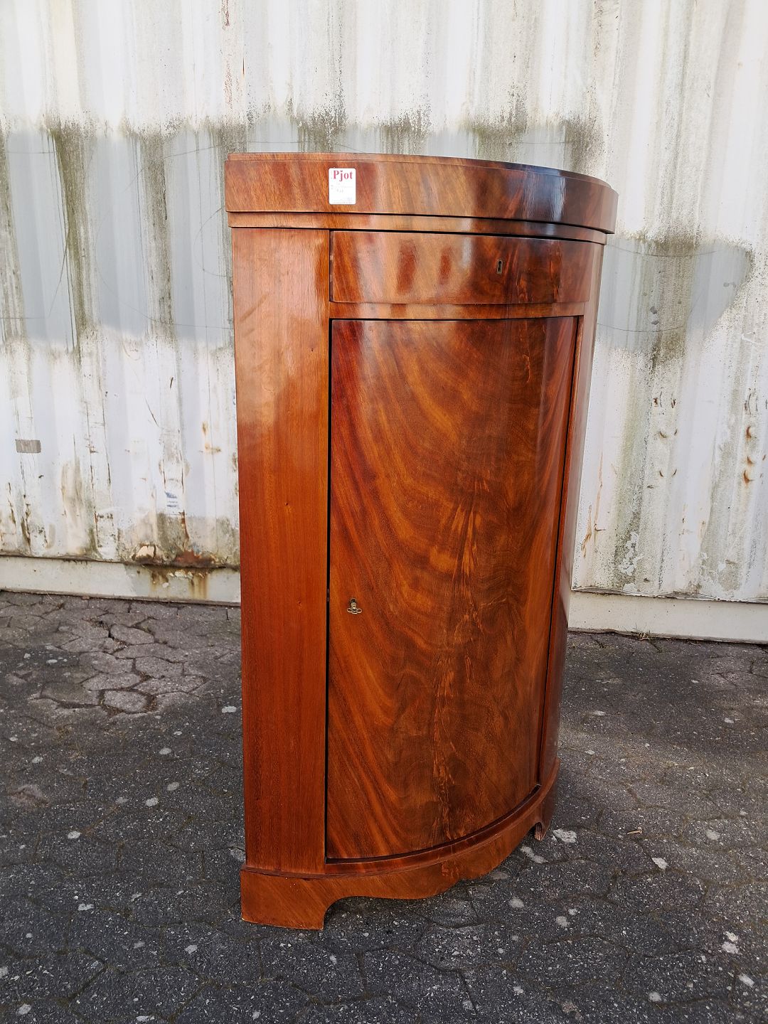 Hjørneskab i fineret mahogni, fra 1910erne.
