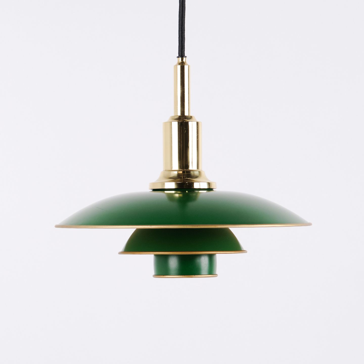 PH 3/2 pendel designet af Poul Henningsen og udgivet som jubilæumsudgave i 1996 af Louis Poulsen. Lampen er udført i messing med grønne metalskærme, hvilket giver modellen et markant og klassisk udtryk. PH 3/2 er en af Poul Henningsens kendte treskærmslamper, udviklet med fokus på blændfrit og behageligt lys. Jubilæumsudgaven blev kun produceret i en begrænset periode og findes også i en variant med røde metalskærme.