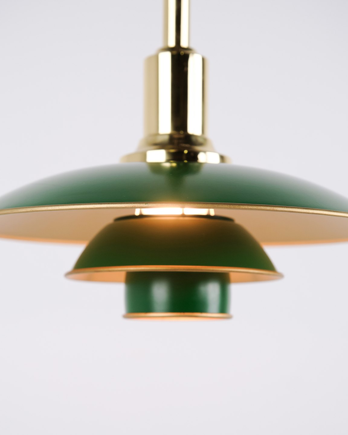 Poul Henningsen Pendel Model PH 3/2 Jubilæumsudgave med Grønne Metalskærme for Louis Poulsen