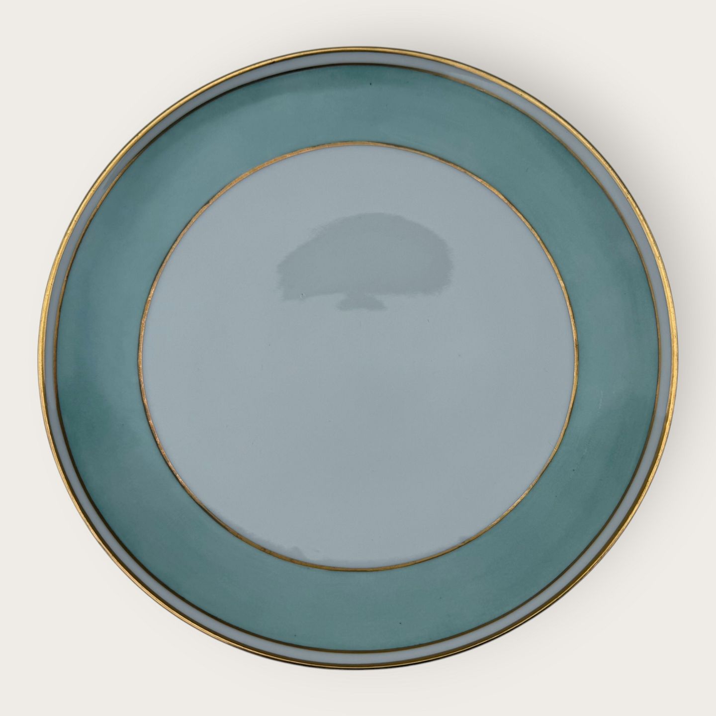 Bing & Grøndahl, Form 643 med bred turkis dekoration og guldkant, Middagstallerken, diameter 23,5cm, 1. sortering, *pæn stand*