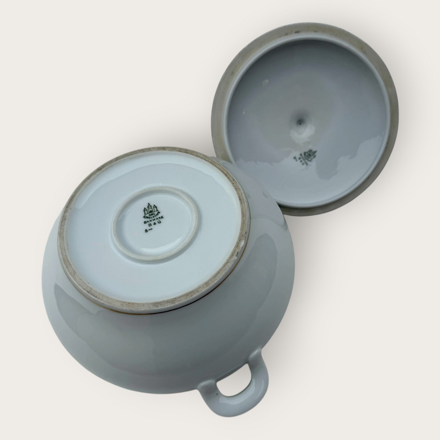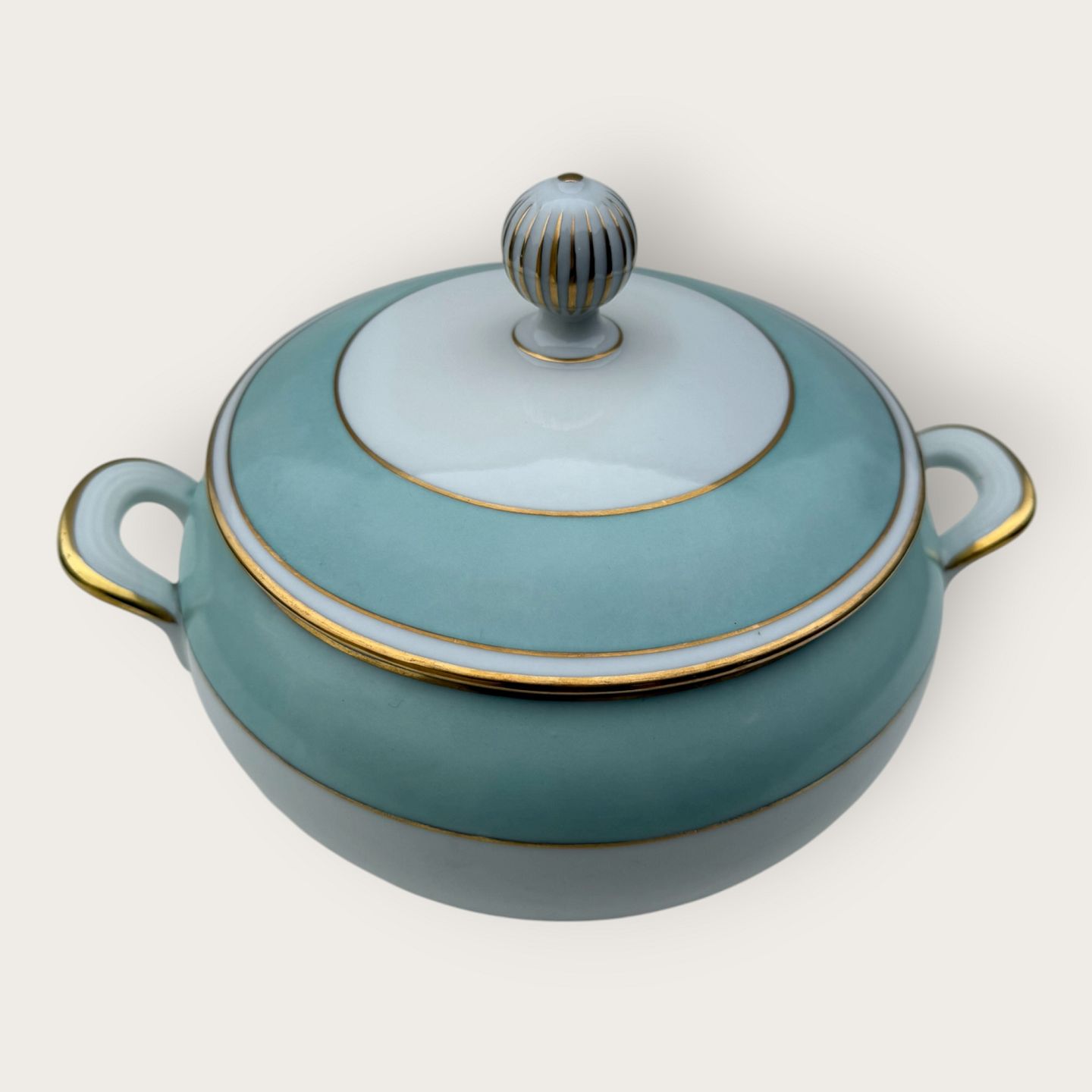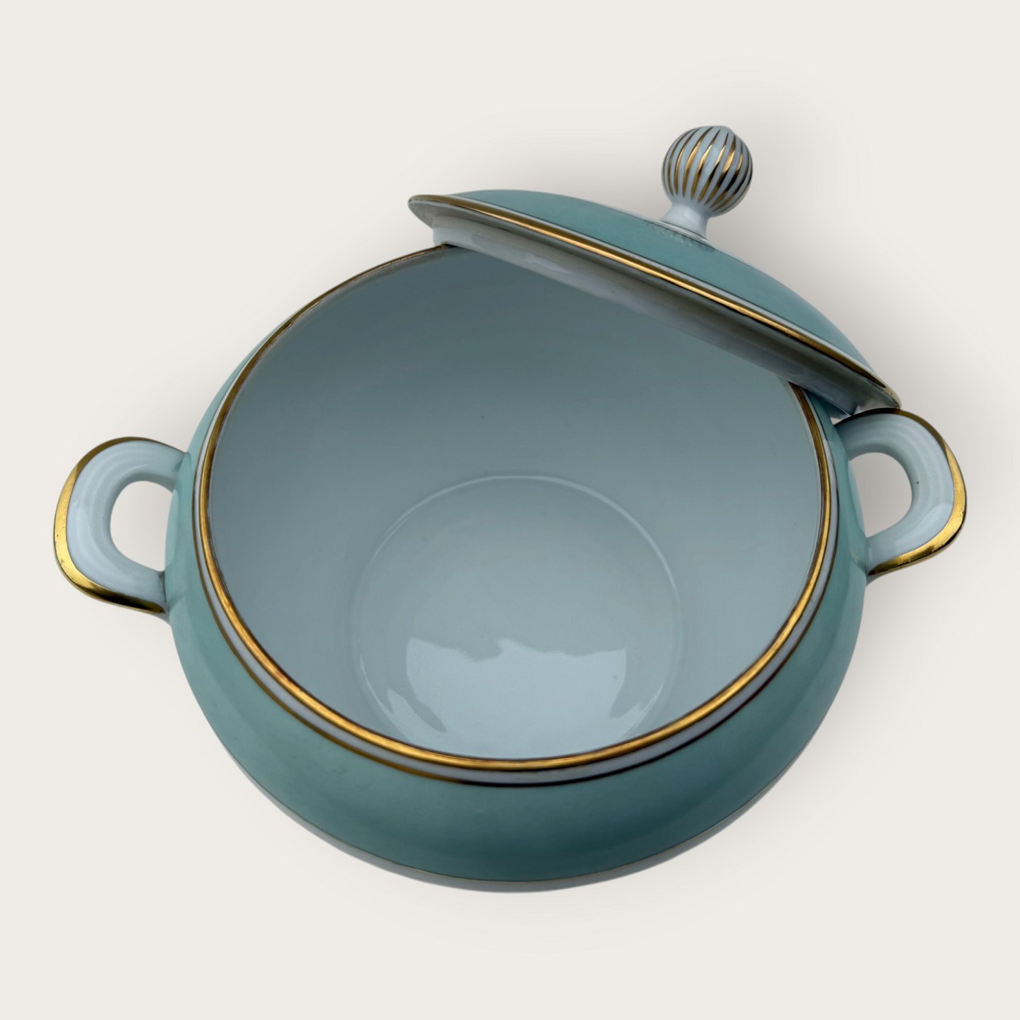 | Bing & Grøndahl, Form 643 med bred turkis dekoration og guldkant, Terrin, #5, højde 17cm, bredde 26cm, 2. sortering, *pæn stand*