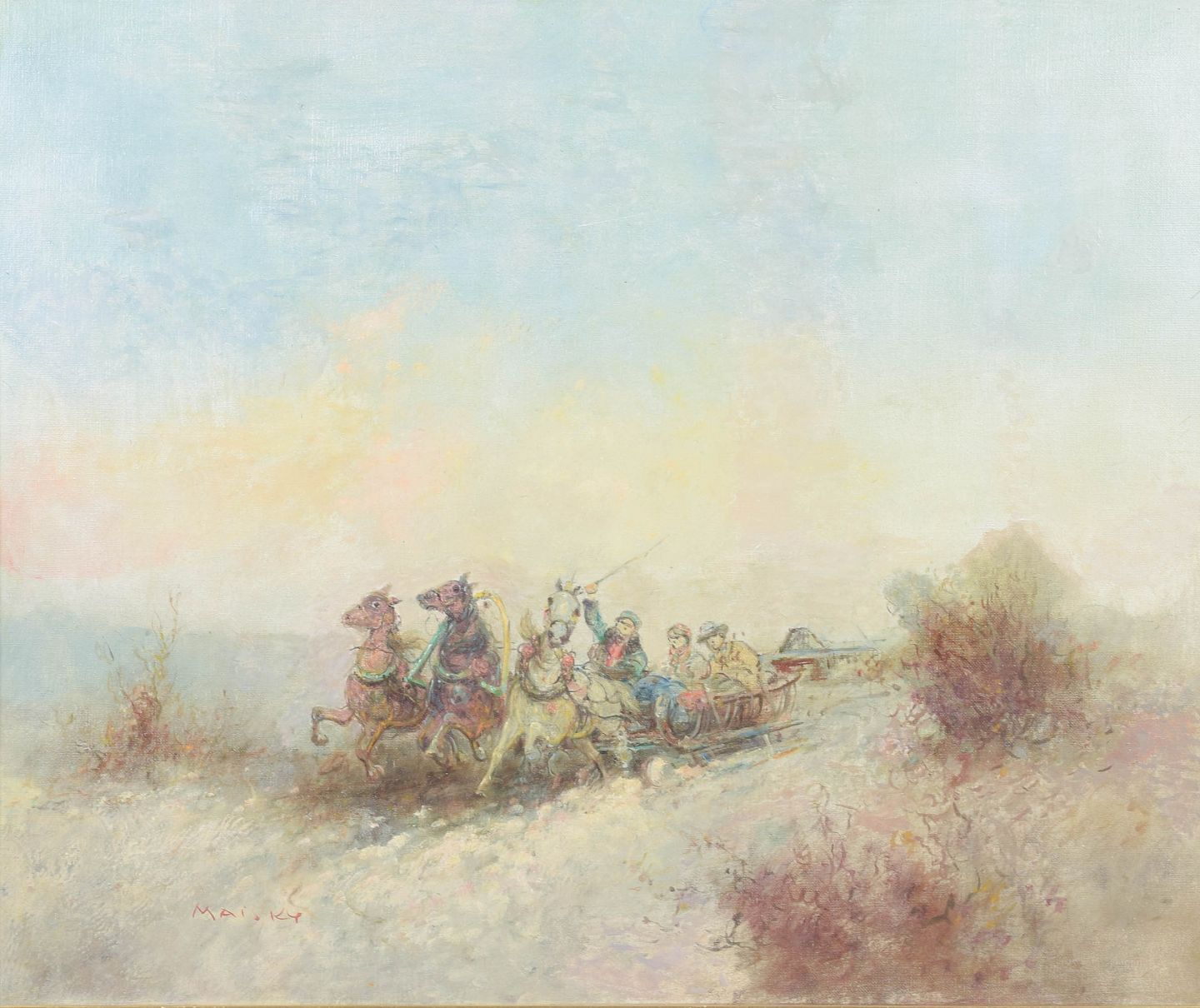 Sedor Maisky (født 1879) var en østrigsk maler kendt for sine figurative og ofte fortællende kompositioner, hvor landskaber og menneskelige aktiviteter indgår i en harmonisk helhed. Hans værker er præget af en let og atmosfærisk penselføring med fokus på lys, bevægelse og stemning, og han arbejdede inden for en tradition, der kombinerer naturalisme med en mere impressionistisk farveholdning.