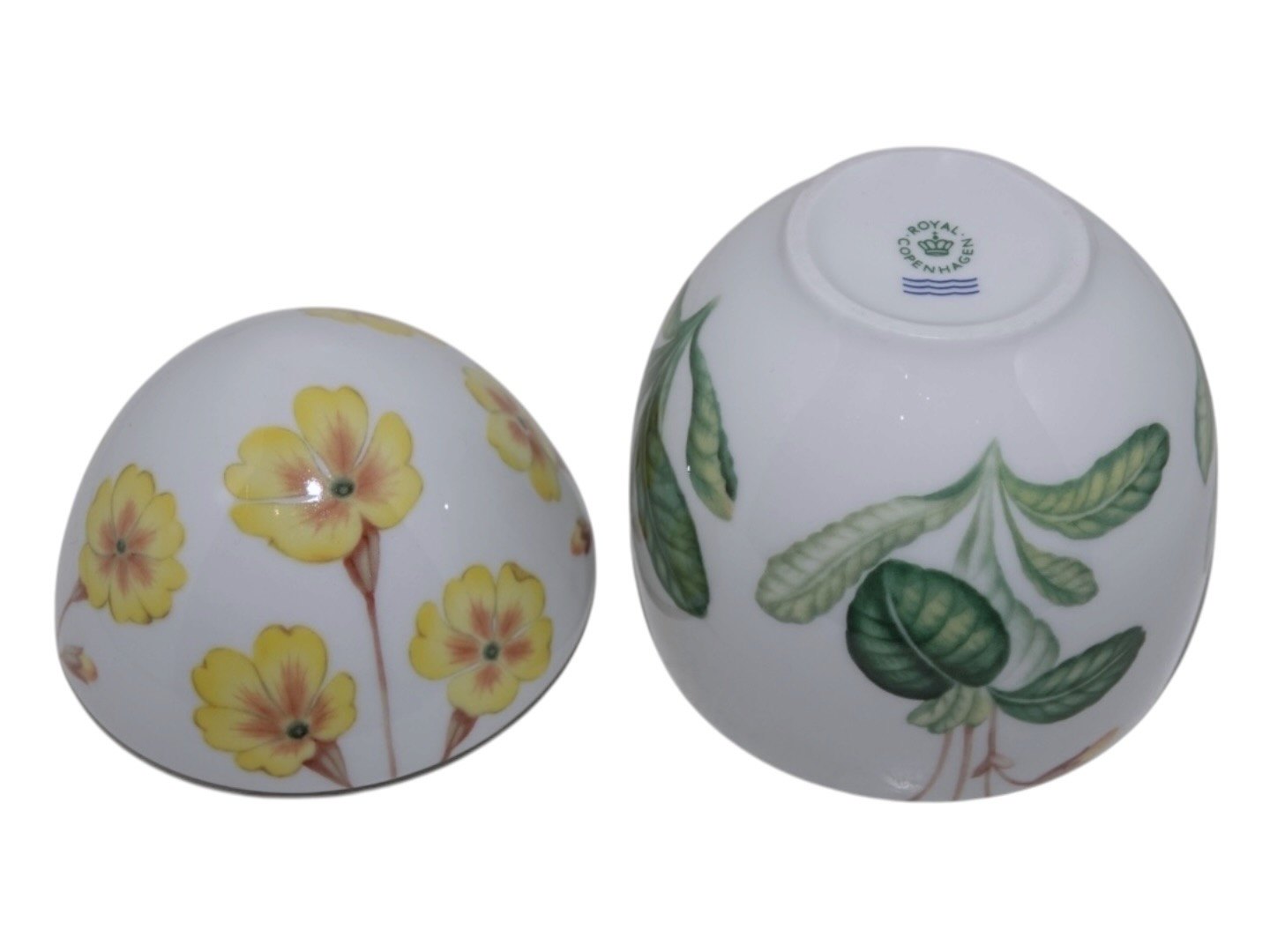 Royal Copenhagen påskeæg bonbonniere dekoreret med gul primula.