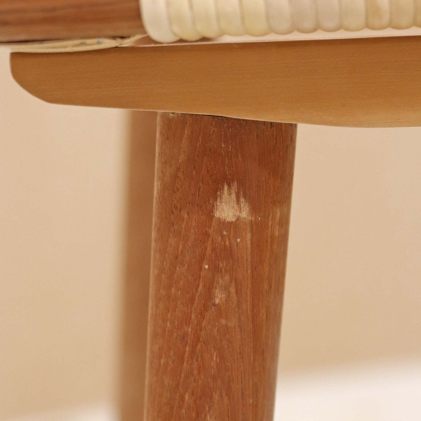 Lille skammel med stel i teaktræ og sæde i ny rørflettet bambus.