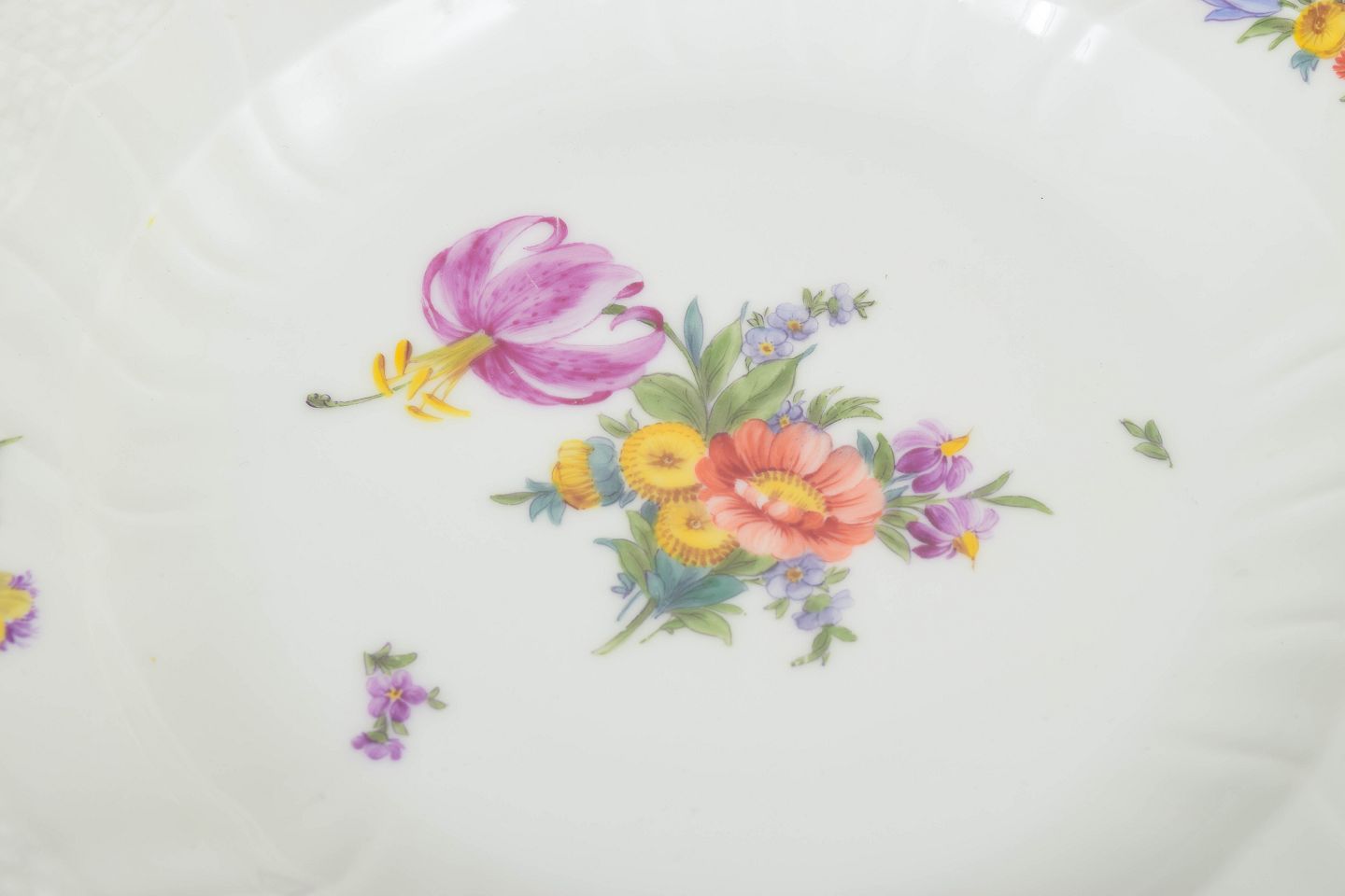 Royal Copenhagen blev grundlagt i 1775 og er en af Danmarks mest anerkendte porcelænsfabrikker. Fabrikken er kendt for sit håndmalede porcelæn og høje kvalitet, hvor hvert stykke dekoreres individuelt af uddannede malere. Mønstre som saksisk blomst afspejler en lang europæisk tradition for blomsterdekoration på porcelæn og er fortsat eftertragtede blandt samlere verden over.