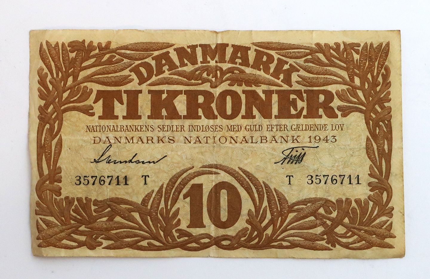 Denmark. Banknote 10 kr 1943 T