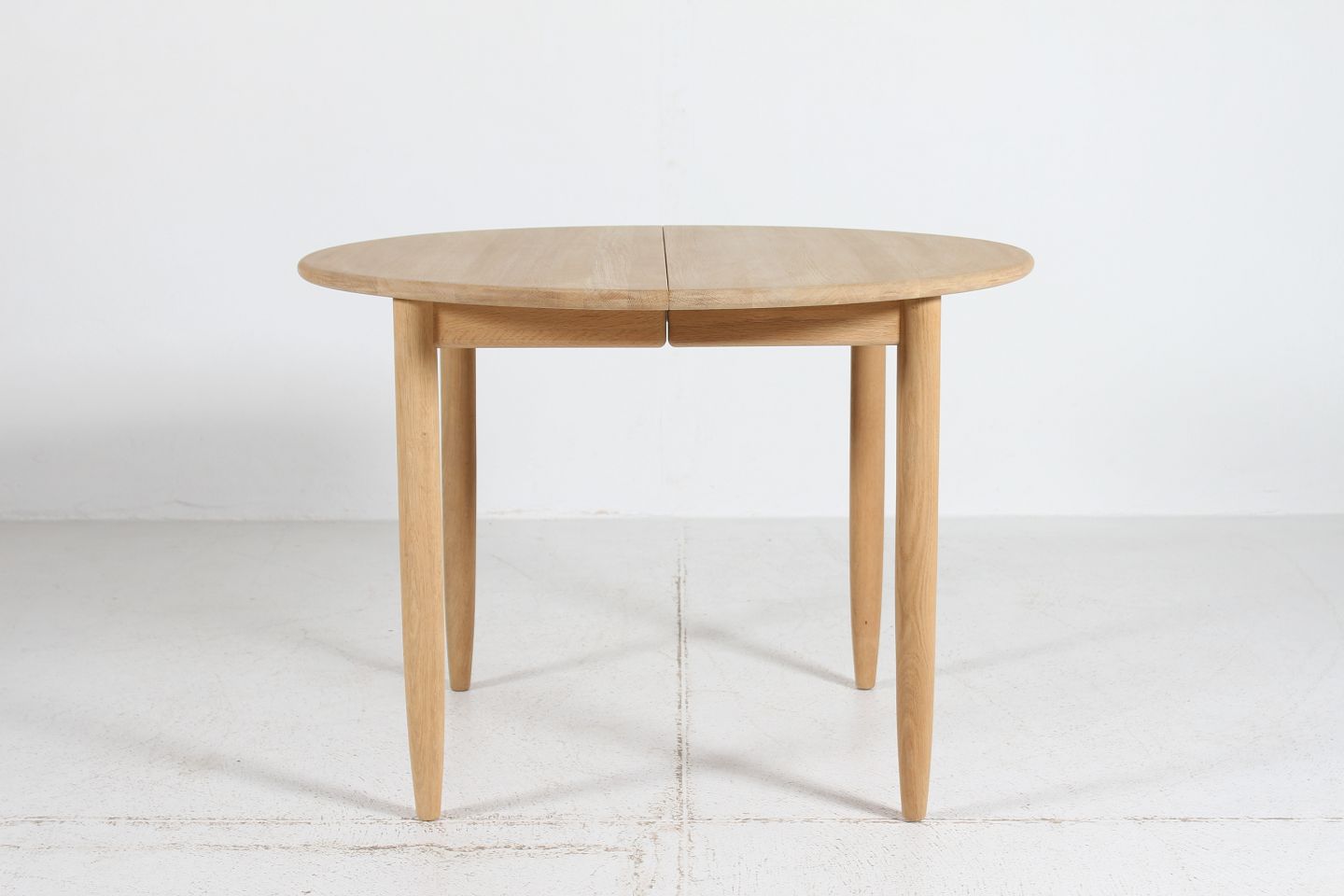 Rundt spisebord fremstillet af massiv sæbebehandlet