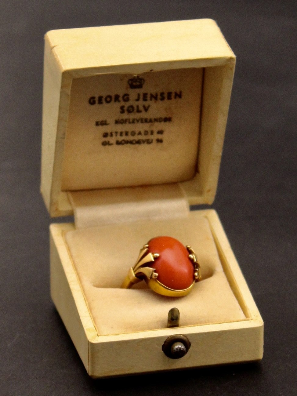Georg Jensen 14 karat guld ring 213 størrelse 53 med cabochon sleben koral stemplet fra 1930-45 emne nr. 636931