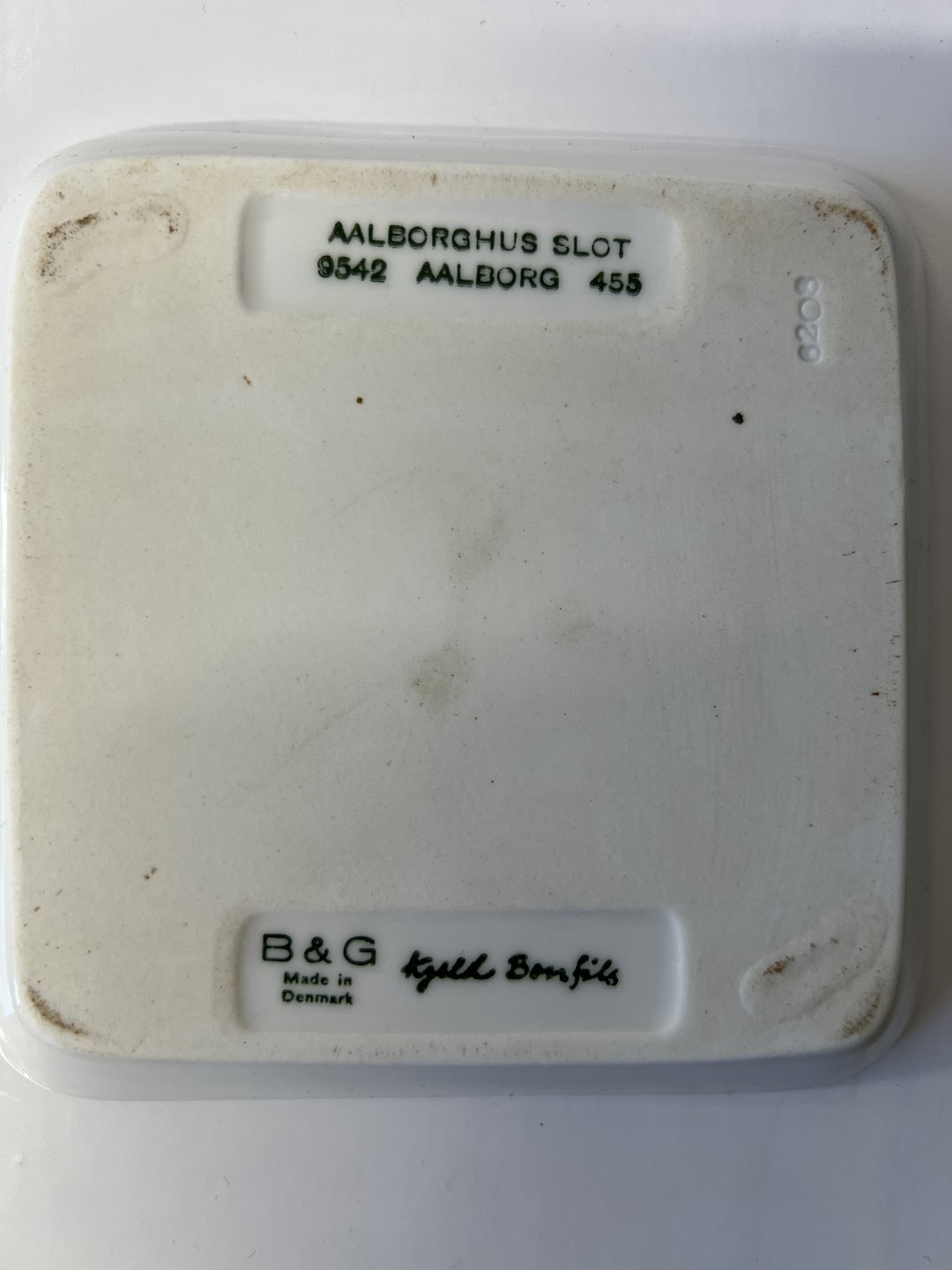 Bing & Grøndahl Firkantet asiet (oprindeligt askebæger) Alborghus slot.