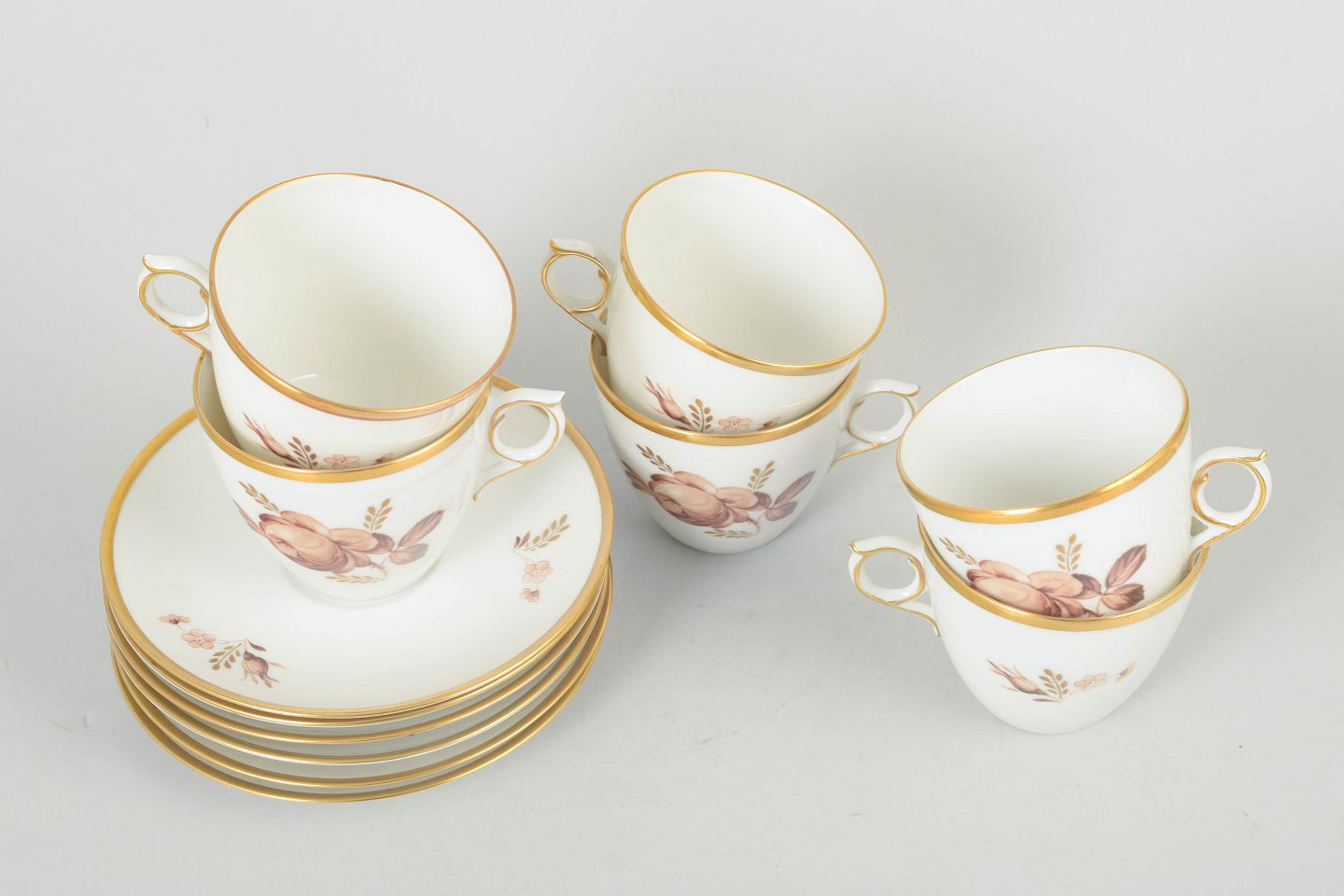 Royal Copenhagen brun rose, sæt af seks kaffekopper med underkopper.