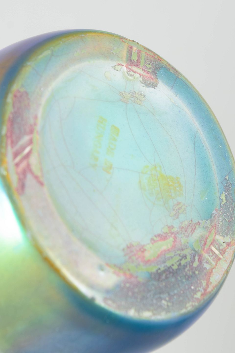 The Zsolnay factory was founded in 1853 in Pécs, Hungary, and gained international recognition under Vilmos Zsolnay (1828–1900). The factory is especially known for its innovative eosin glaze, developed in the late 19th century, which creates a metallic, iridescent surface. Zsolnay was a key contributor to the Art Nouveau movement and produced both artistic ceramics and high-quality architectural elements.