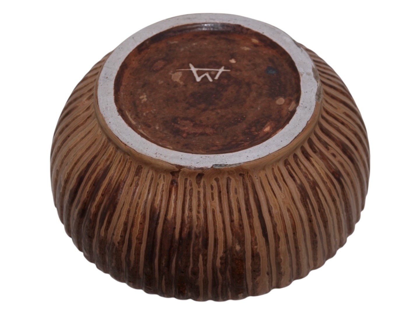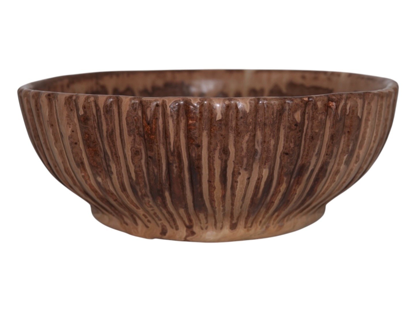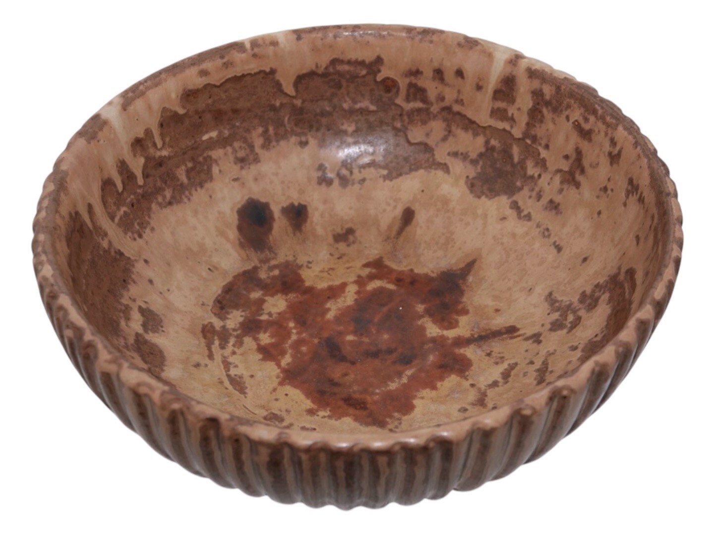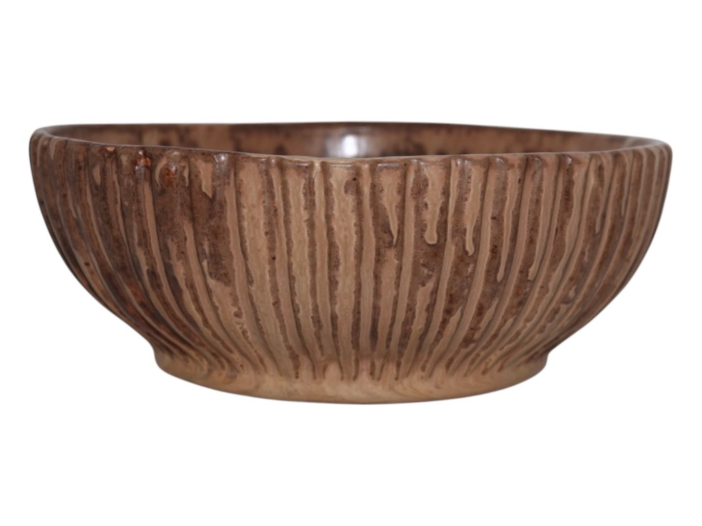 Bode Willumsen keramik, større rund skål i Salto stil med riller fra 1930'erne.
