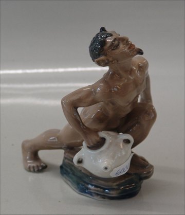 Dahl Jensen. 1336 Faun med vindunk (DJ) 13 cm Mærket med kongelig krone og DJ Copenhagen i hel og fin stand. Trold Bacchus PUK