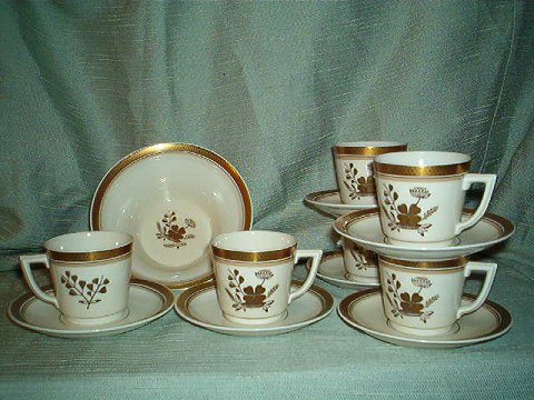 Royal Copenhagen, Liselund, Mokkakopper og underkopper. I. sort. 6 sæt. pr. sæt 75 kr. Småkageskål SOLGT