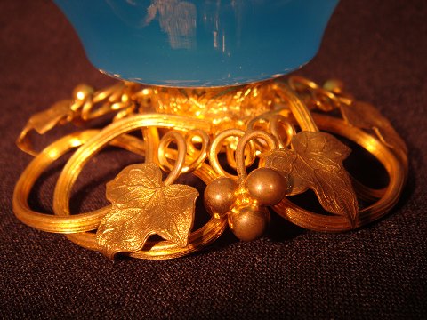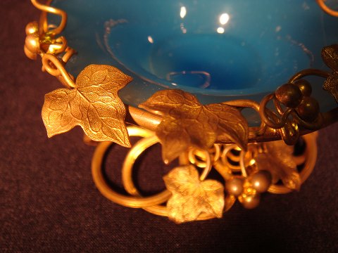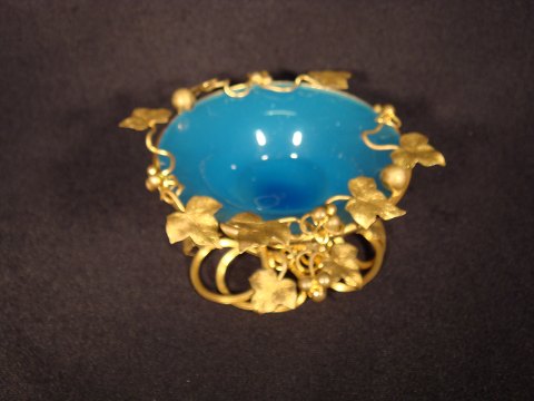 Fransk sukker opsats i blå Opalineglas med blomster i forgyldt Bronce