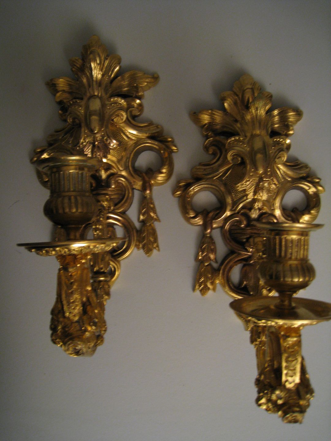 2 stk. Forgyldte væglampetter, 1900 tallet, h-32, d-18