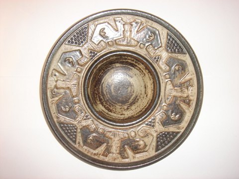 Royal Copenhagen, stentøjs fad af Jørgen Mogensen med fuglemotiv. Nr. 31388. Diameter 25,5 cm. Pris: 400 kr. stk. Lager: 2