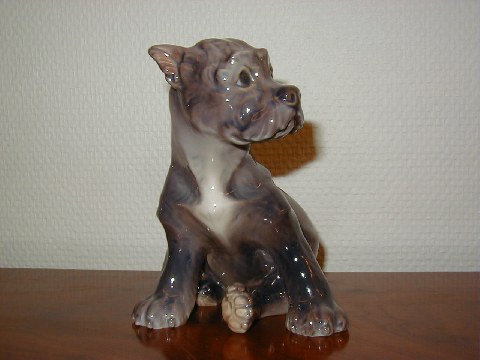 Dahl Jensen Dog figurine, schnauzer, decoration number 1095, factory second, height 13.5 cm. This piece has dantastic dark colors.