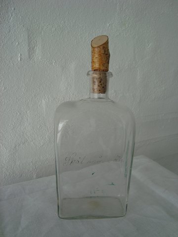 Gammel svensk kantineflaske med kork/træprop.