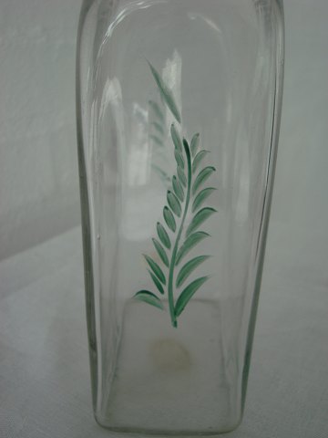 Gammel svensk kantineflaske med slidt tekst og dekoration.