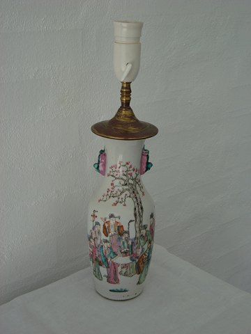 Kinesisk porcelæns vase omlavet til bordlampe.