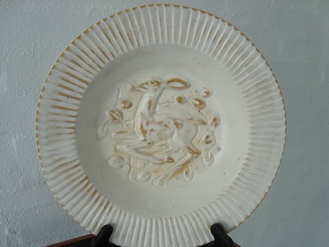 Keramik bordfad med rådyr i relief - Einar Johansen.