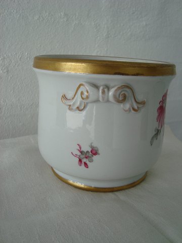 Smuk urtepotte med lækker mat guld og håndmalet rød floral dekoration.