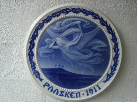 Plaketten er tornekranset og med teksten "Paasken 1911"