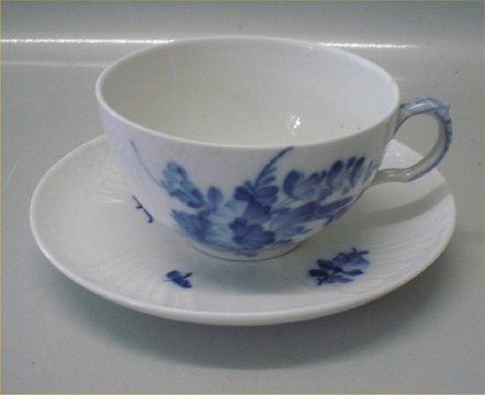 Kongelig Dansk Porcelæn Blå Blomst Svejfet 1550-10 Morgenkop 35 cl underkop ca 17 cm I fin og hel stand