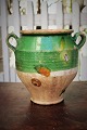 Decorative 1800s clay pots with handles from the South of France with green ...
