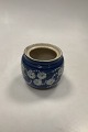 Old Royal Copenhagen stoneware apothecary jar with gold rim and decorations. ...