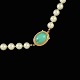 Collier i 18 kt guld med smukt udskåret jade og Akoya perler