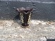 Dorte Visby låg vase i sort salt glasur 34cm.