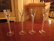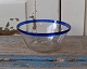 4 danske mælkeskåle I klart glas med blå ombukket kant. Et stk. er solgt.